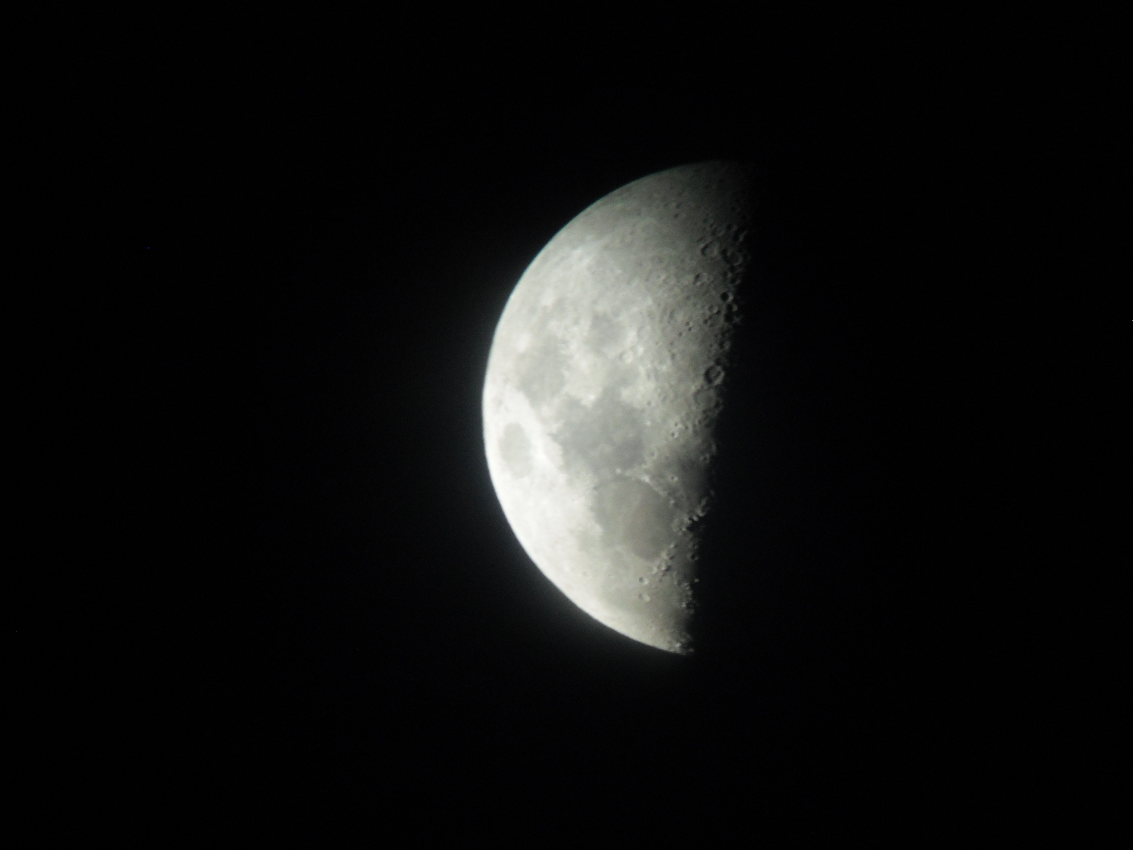 Finally, here an observation of the first quarter Moon through a Mead Newtonian 8 inch with the same camera. If you zoom in on the picture, you might spot the quarter Moon X along the terminator. We made this observations on 1/31/2012.